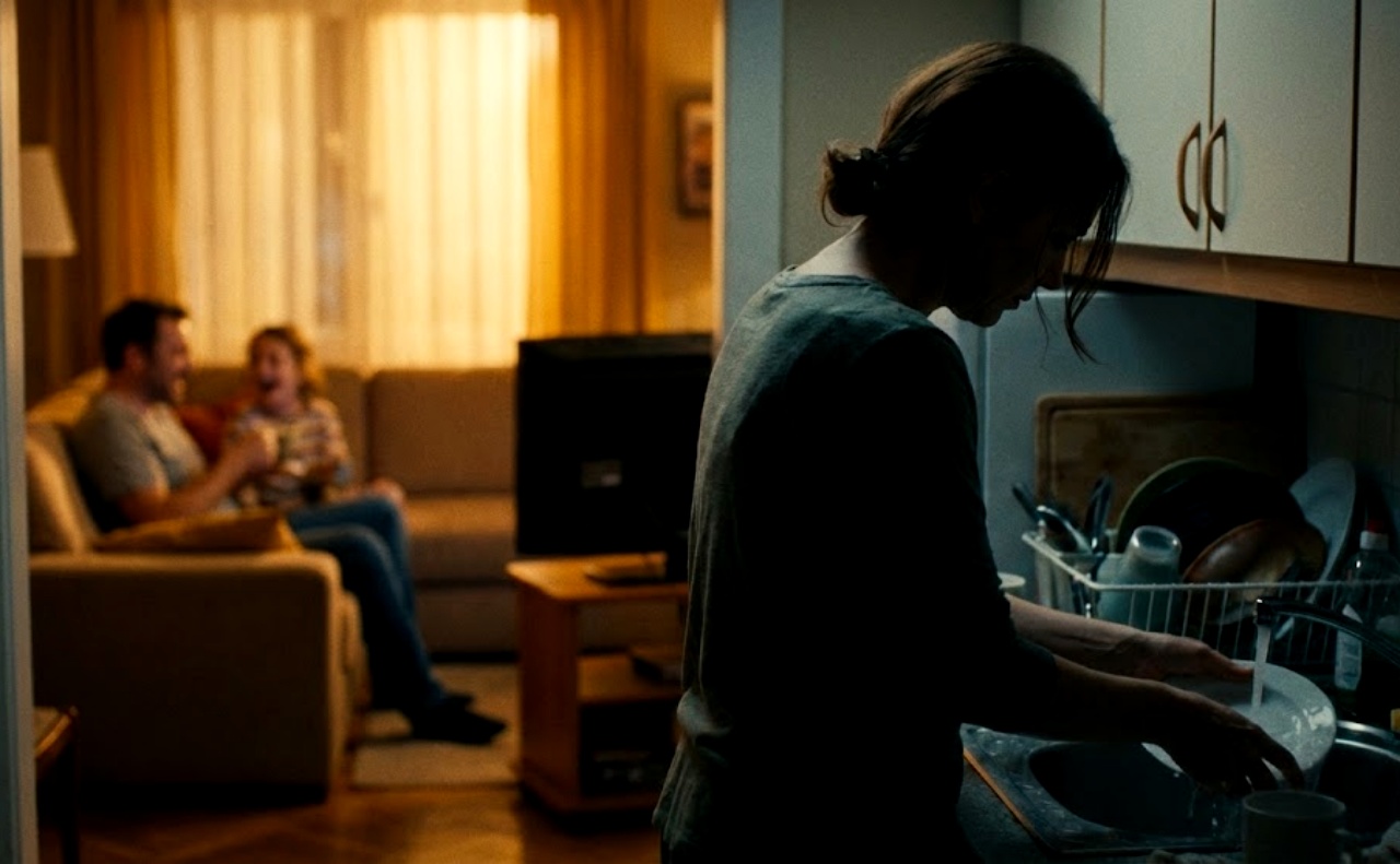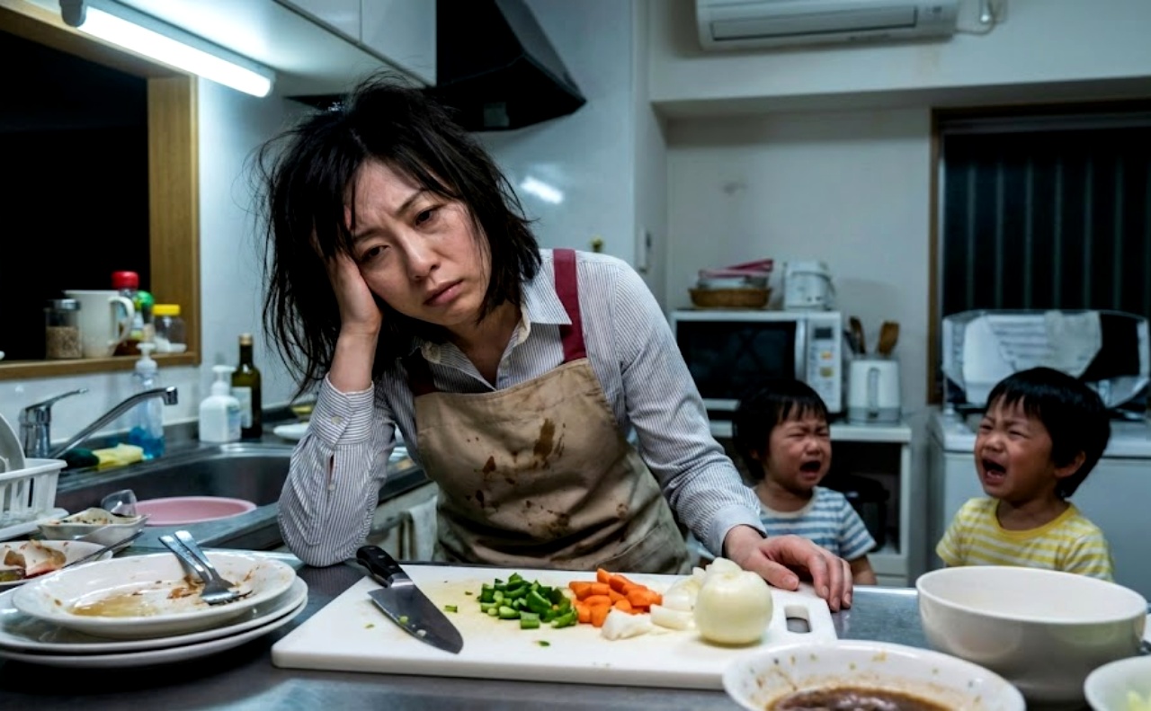 ダイニングでテレビを見ている夫と子供たちの笑い声を背中で聞きながら、